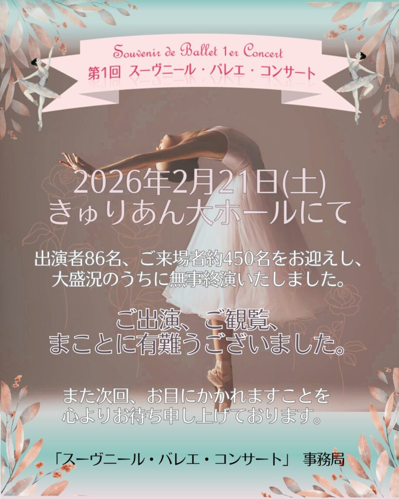 第1回 スーヴニール・バレエ・コンサート (Souvenirs de Ballet 1er Concert) 無事に終演いたしました