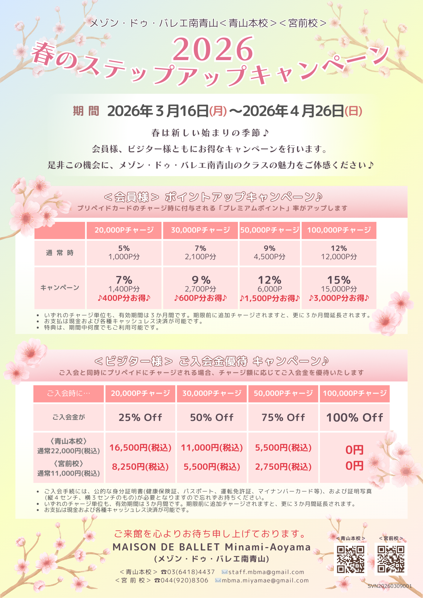 3/16(月)ー4/26(日)「春のステップアップ キャンペーン」(会員様/ビジター様)